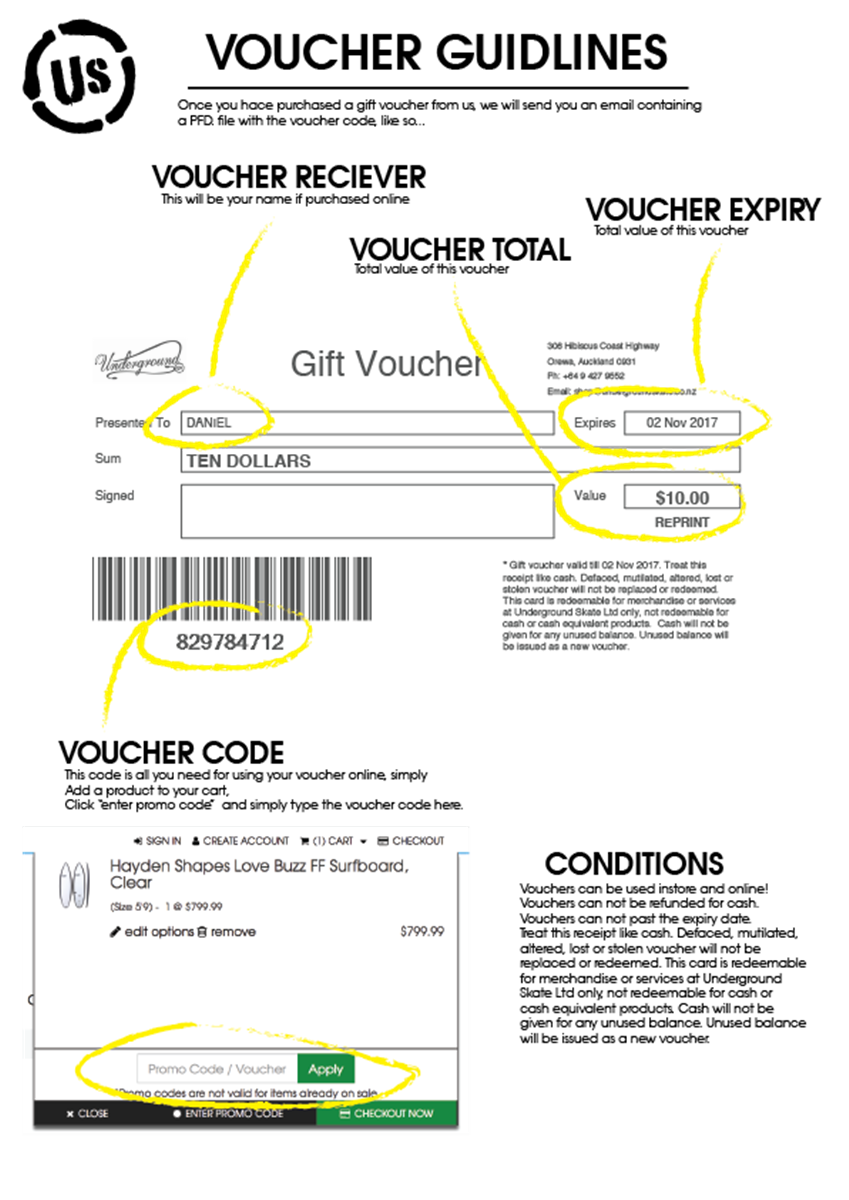 This fifty dollar gift voucher can be redeemed in-store or online (undergroundskate.co.nz and undergroundsurf.co.nz) and is valid for 12 months from the date of purchase.