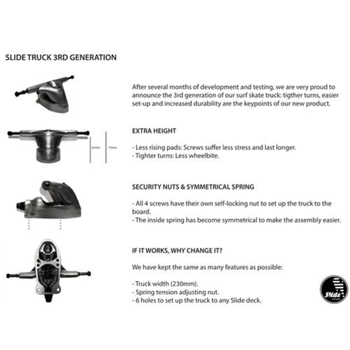 - Front truck: Slide 165 mm