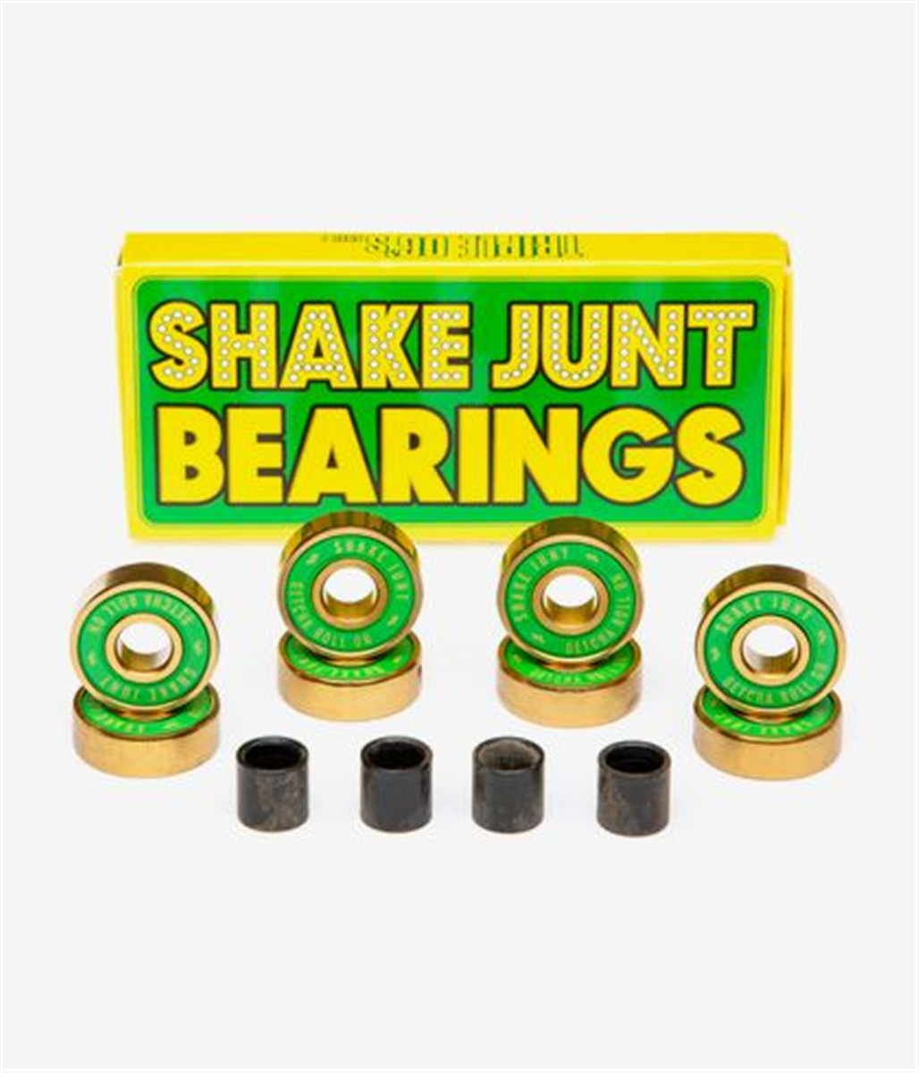 Shake Junt's premium bearings manufactured for high quality performance and every type of skating. A non-contact bearing with removable rubber shields for easy cleaning and less friction. Getcha Roll On!