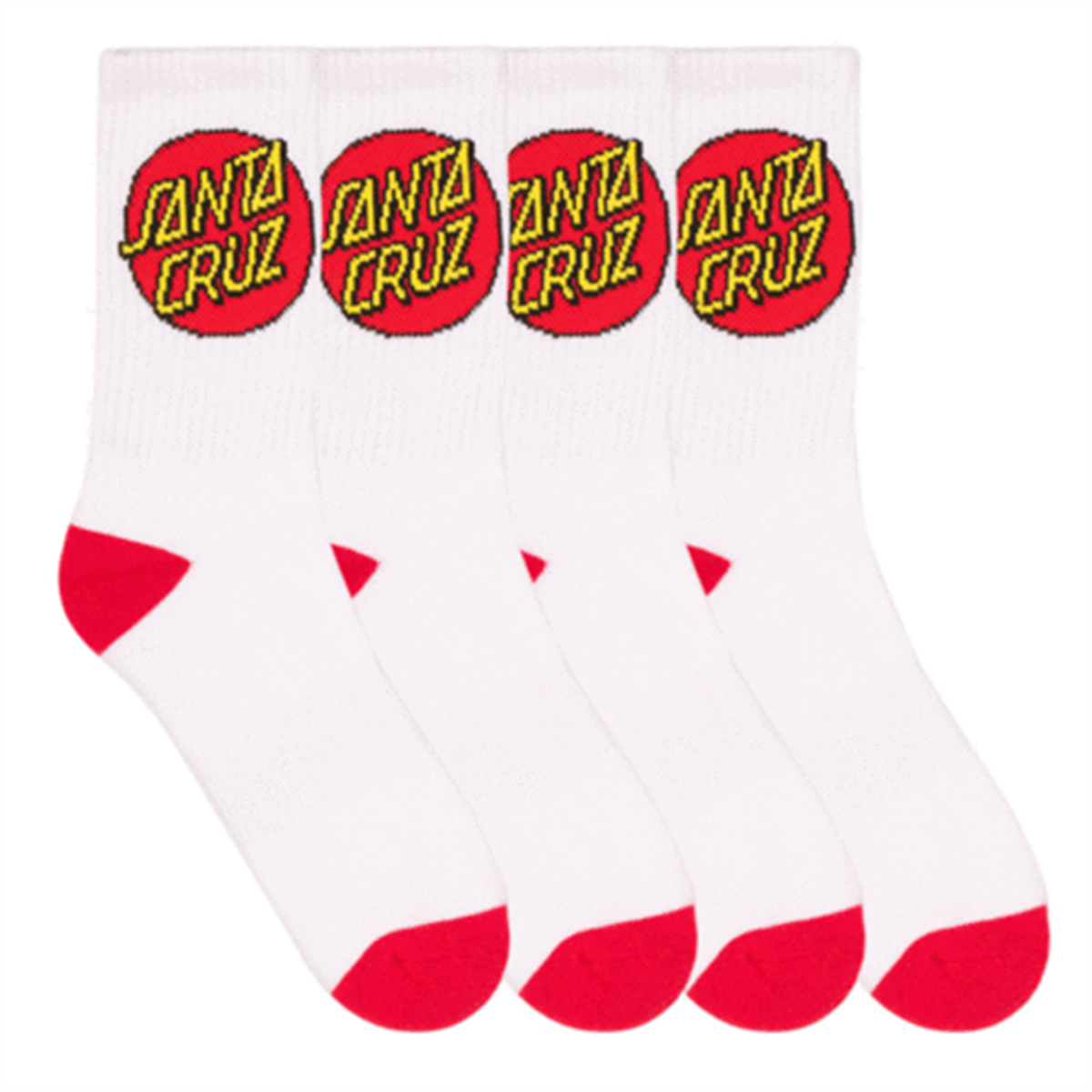 Santa Cruz MENS CLASSIC DOT 4 PACK CREW SOCKS, WHITE