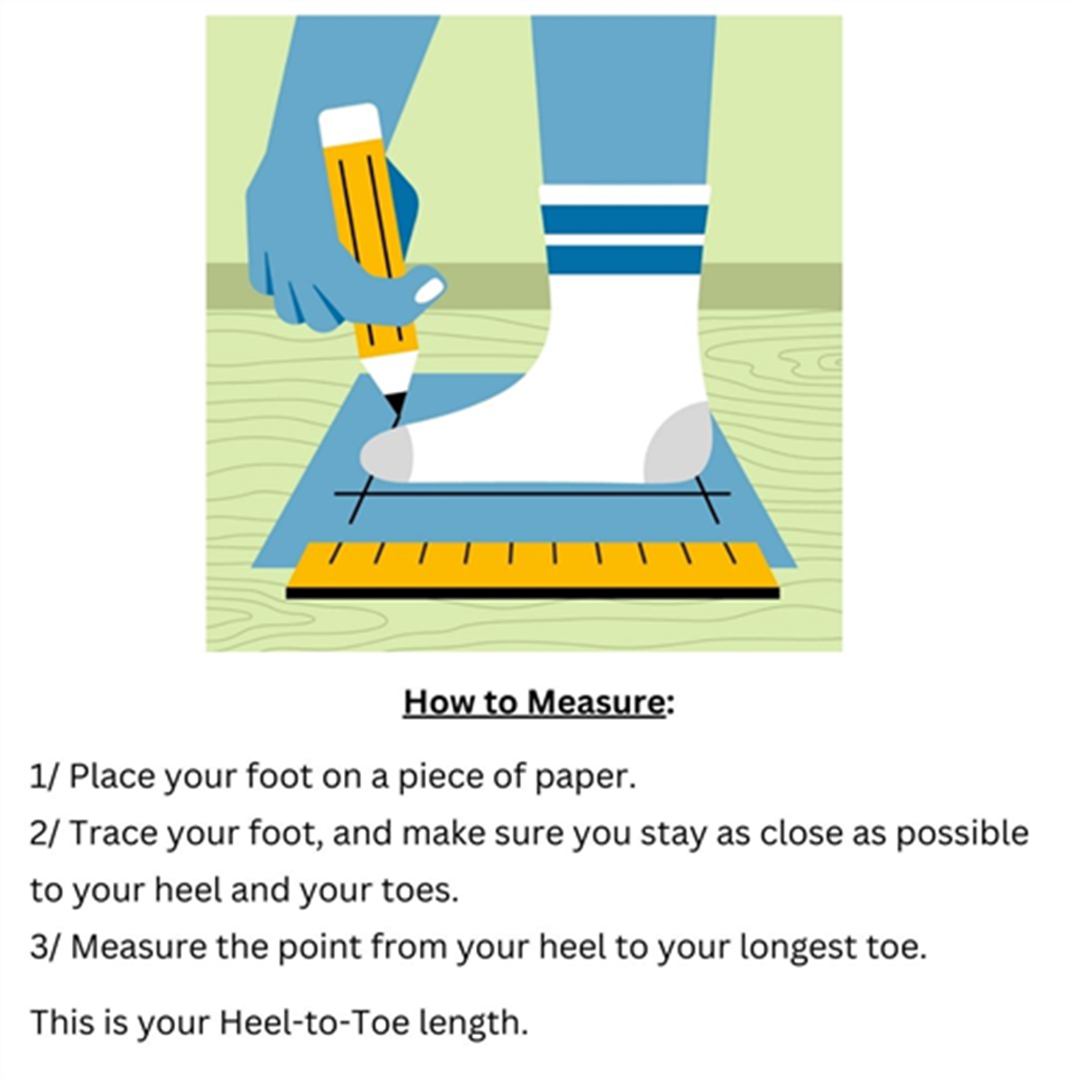 - Wiggle room at the front of the shoe – your toes shouldn’t touch the front.