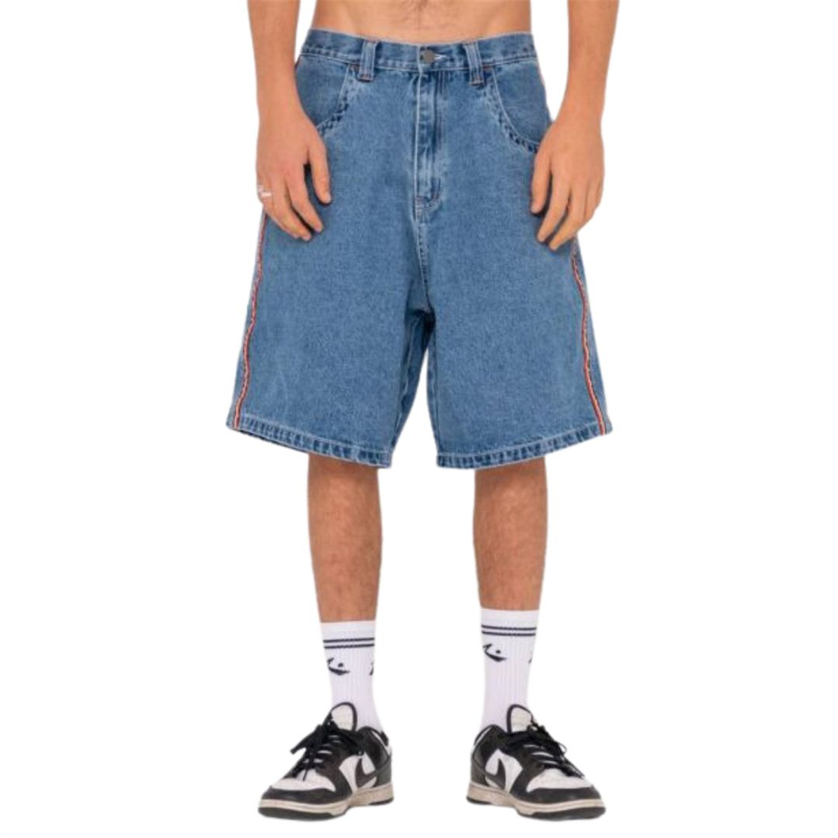 FLIP DADDY 2.0 BAGGY DENIM JORTS, MIDDY BLUE