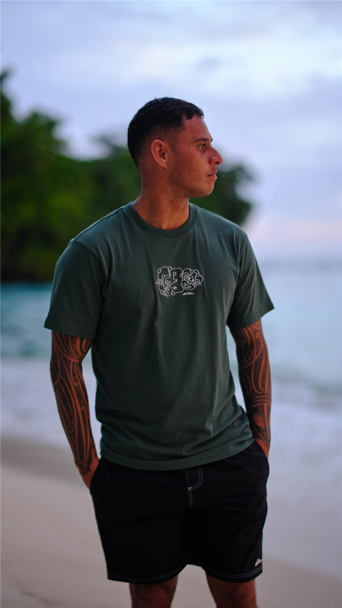 Quiksilver TIKI SS TEE BY KEHU BUTLER, JUNGLE GREEN