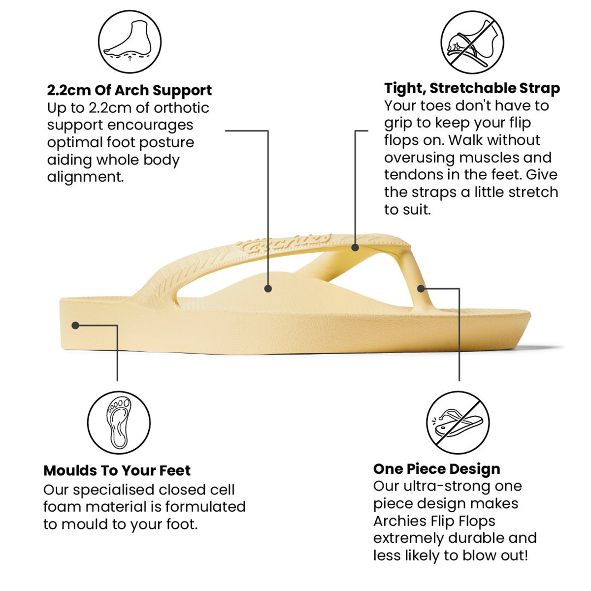 Archies Arch Support Jandals, Lemon - NZ | Underground Surf