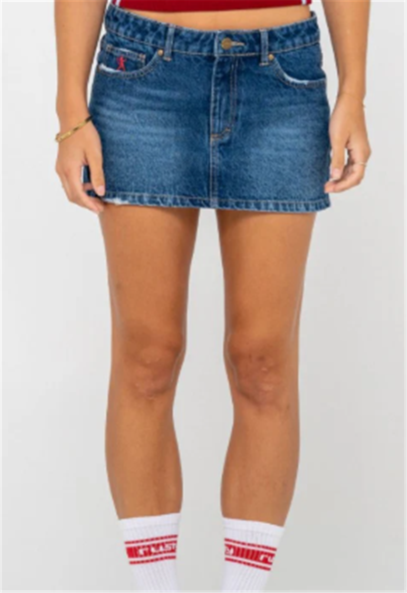 Rusty SHORTY LOW RISE DENIM MICRO MINI SKIRT, BLAST BLU